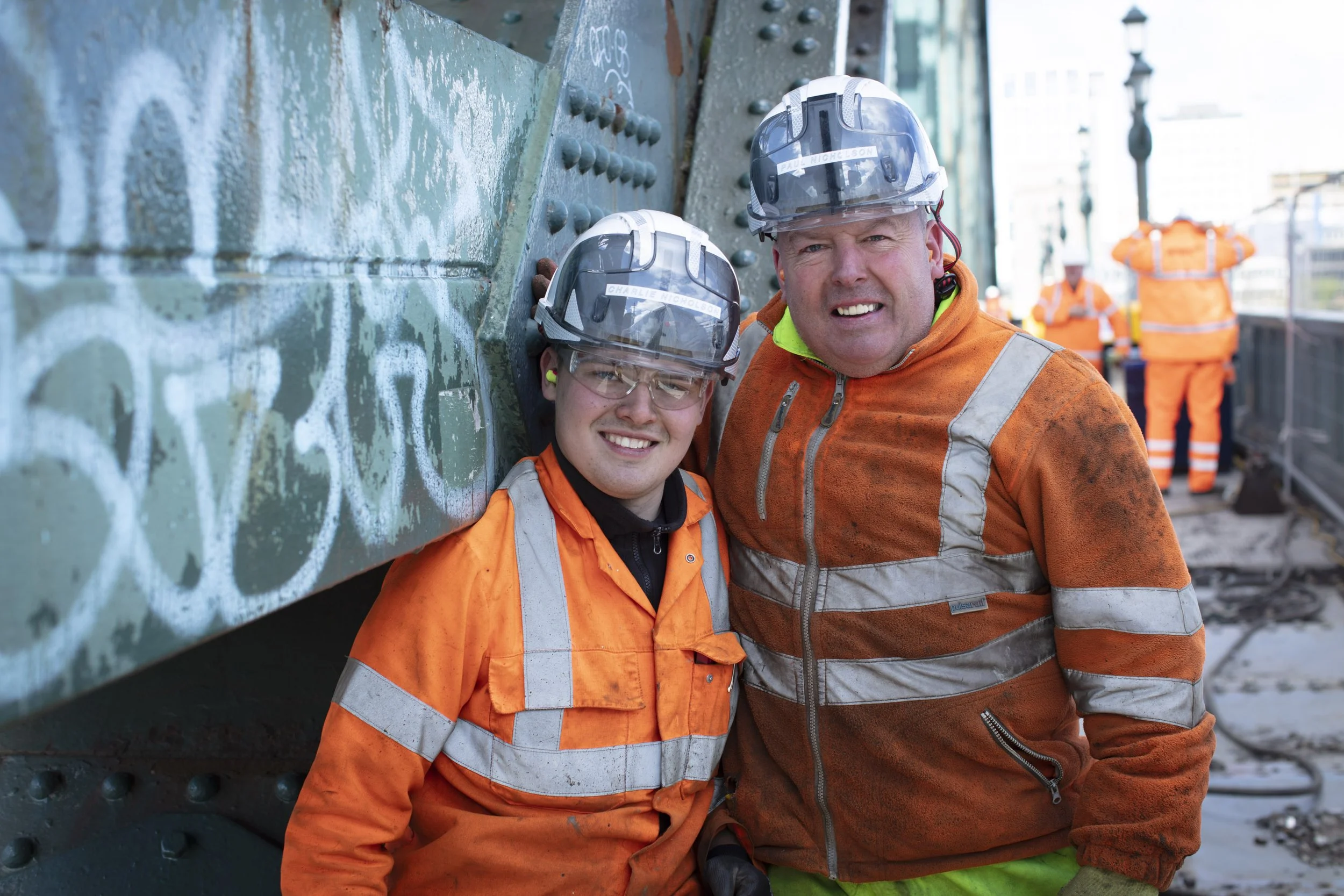 Charlie (left) and Paul (right) become second and third generation of Nicholson family to work on the Tyne Bridge. Image Credit: Andrew Heptinstall Photography.